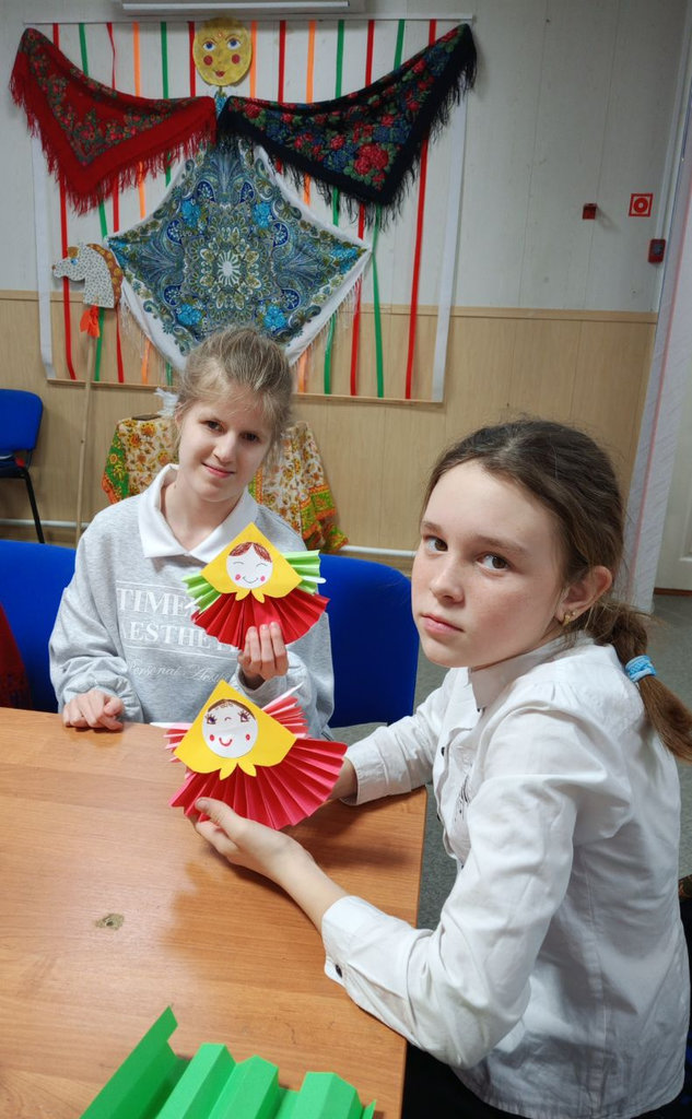 Затем мероприятие продолжилось мастер-классом- ребята изготовили из бумаги используя приём «гормошка» симпатичных кукол Маслениц, которые украсили праздник.
