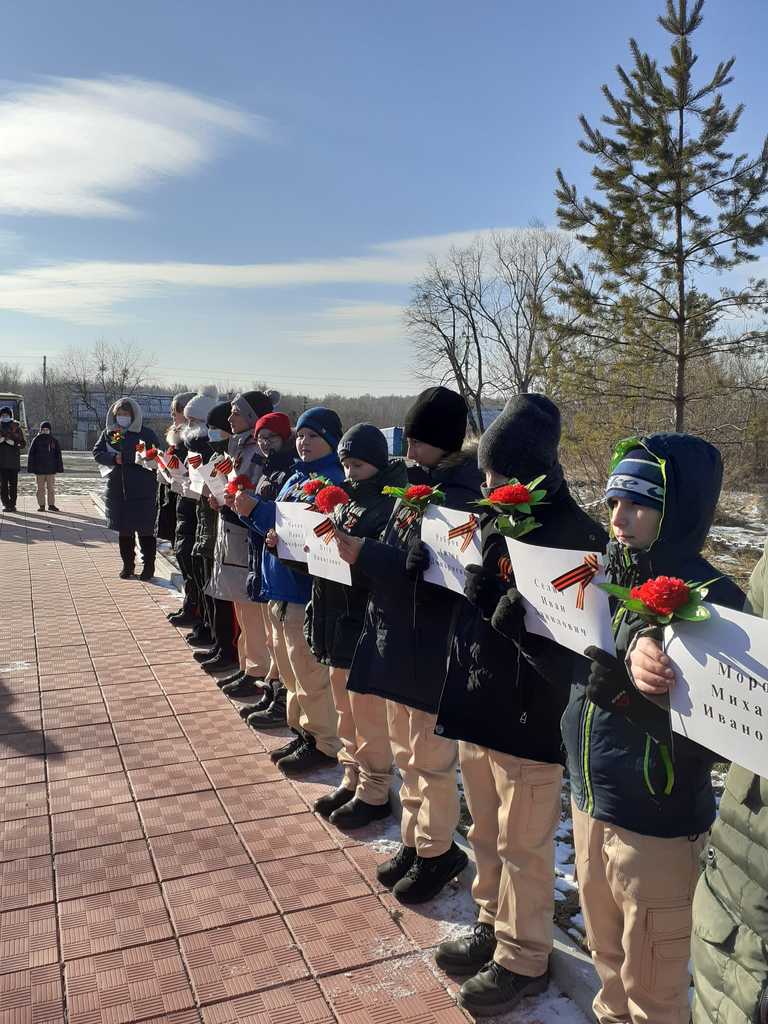 Ребята возложили гирлянду памяти и цветы к обелиску павшим на фронтах войны, жителям с. Анастасьевки. Из 25 человек, не вернувшихся с Великой Отечественной войны, 12 пропали без вести.