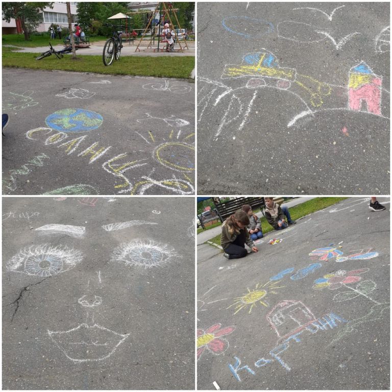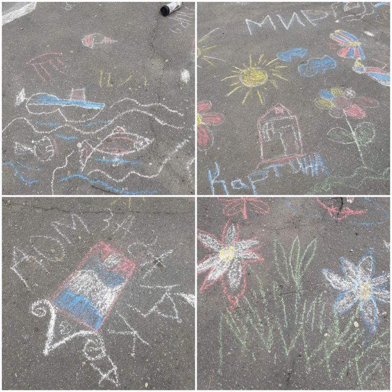 Всероссийская акция «Я рисую мелом». Детский рисунок – один из символов мирной жизни. Ребята нарисовали на асфальте тематические рисунки.