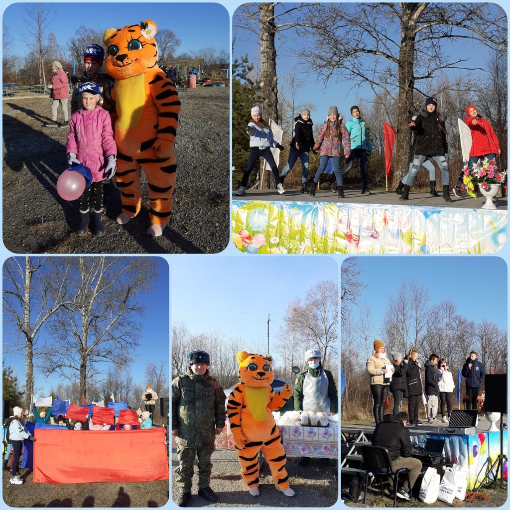 Торжество открыли участники детского танцевального объединения «Шаг вперёд» под руководством Лукиновой Евгении танцевальной композицией «Мы дети твои, Россия». Волонтёры культуры – молодёжное объединение «Добрый свет», выступили с призывом о здоровом образе жизни. Лейтмотив их выступления: «Здоровый я – здоровая семья. Здоровый я – здоровая страна». И чтобы доказать это, пригласили всех присутствующих вместе с Тигрулей на весёлый танцевальный флешмоб.