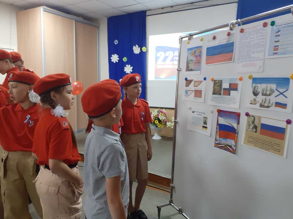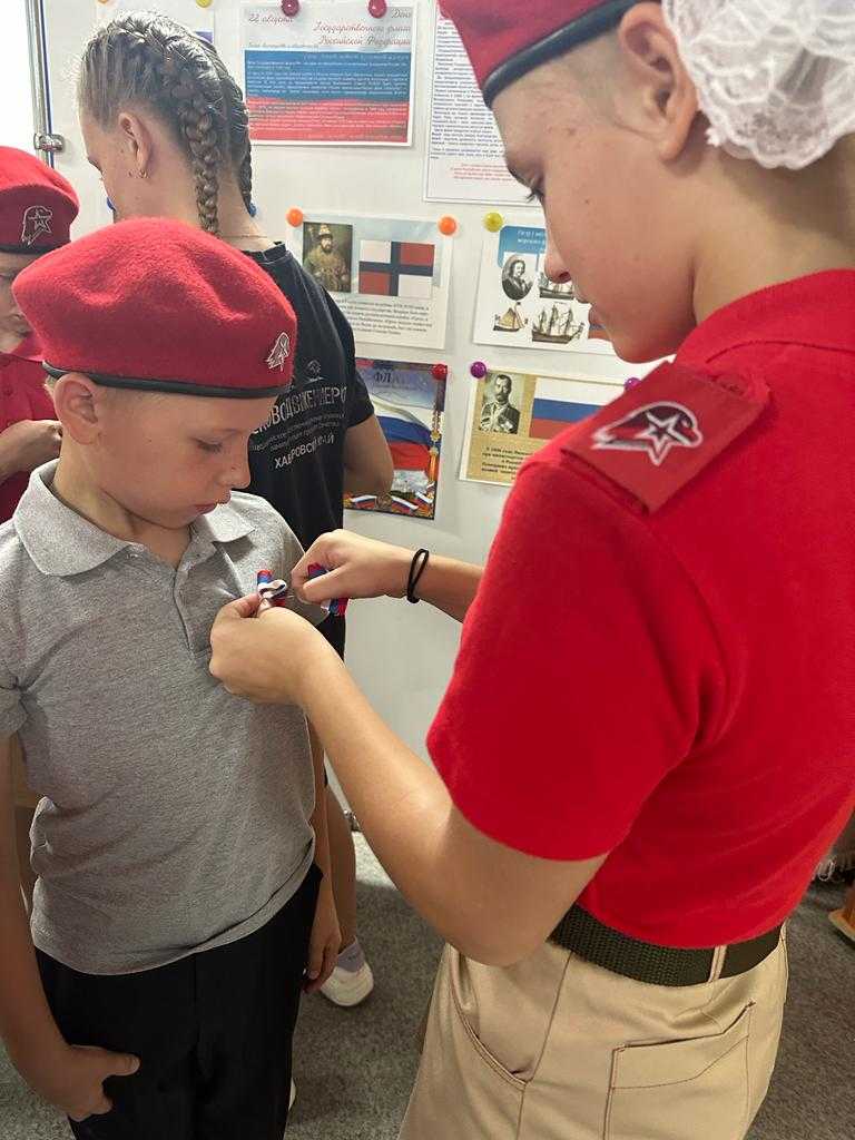 Обсудили с ребятами важность поднятия флага РФ и ответственность за его надругательство. Также обсудили, какое значение имеет российский флаг для каждого жителя страны. Юнармейцы отметили, что он символизирует единство, силу и мир нашей страны, объединяет всех граждан России, независимо от их национальности, вероисповедания и политических убеждений, напоминает людям о подвигах наших предков.