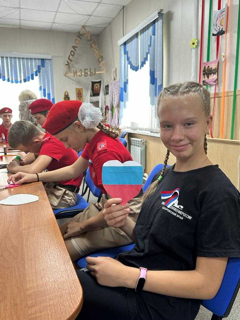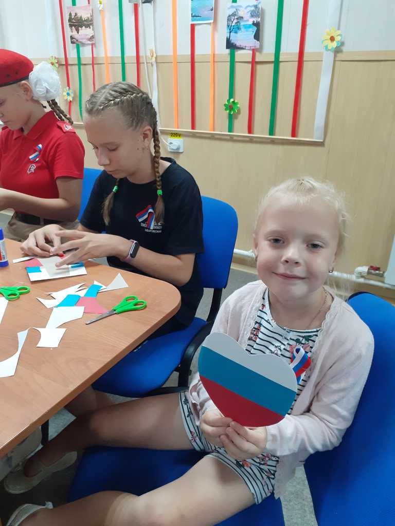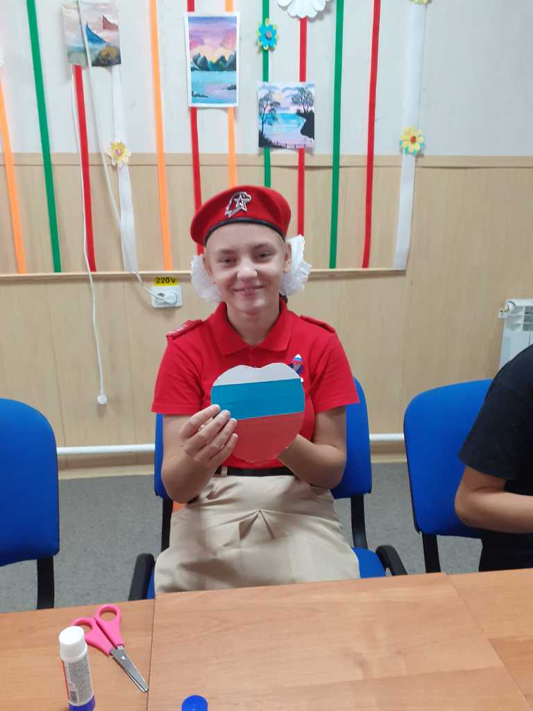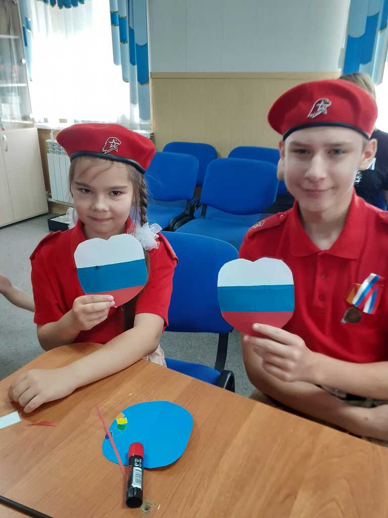 В конце мероприятия ребята исполнили гимн и изготовили сердечки в стиле триколора.