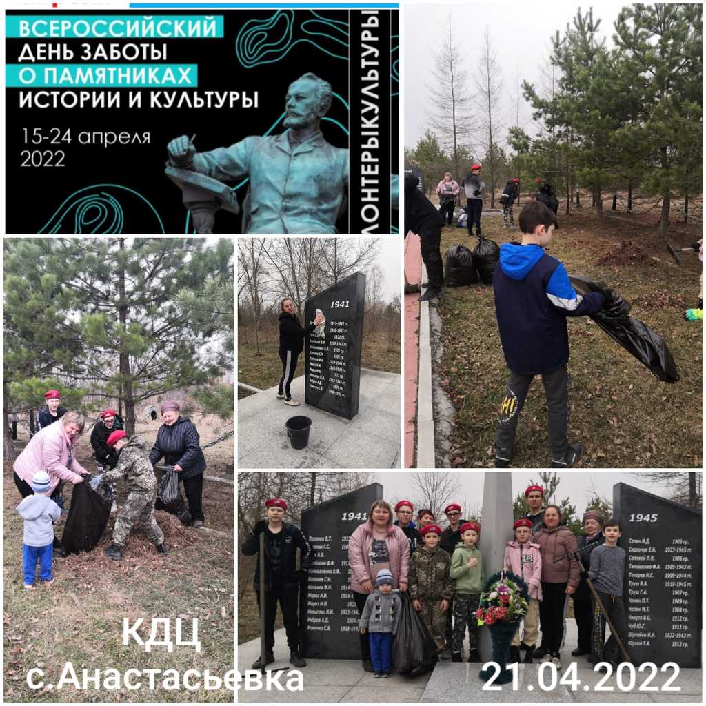21 апреля 2022 г. у обелиска воинам -односельчанам с. Анастасьевка, погибшим за Родину в годы Великой Отечественной войны, прошла Акция «Всероссийский день заботы о памятниках истории и культуры».
