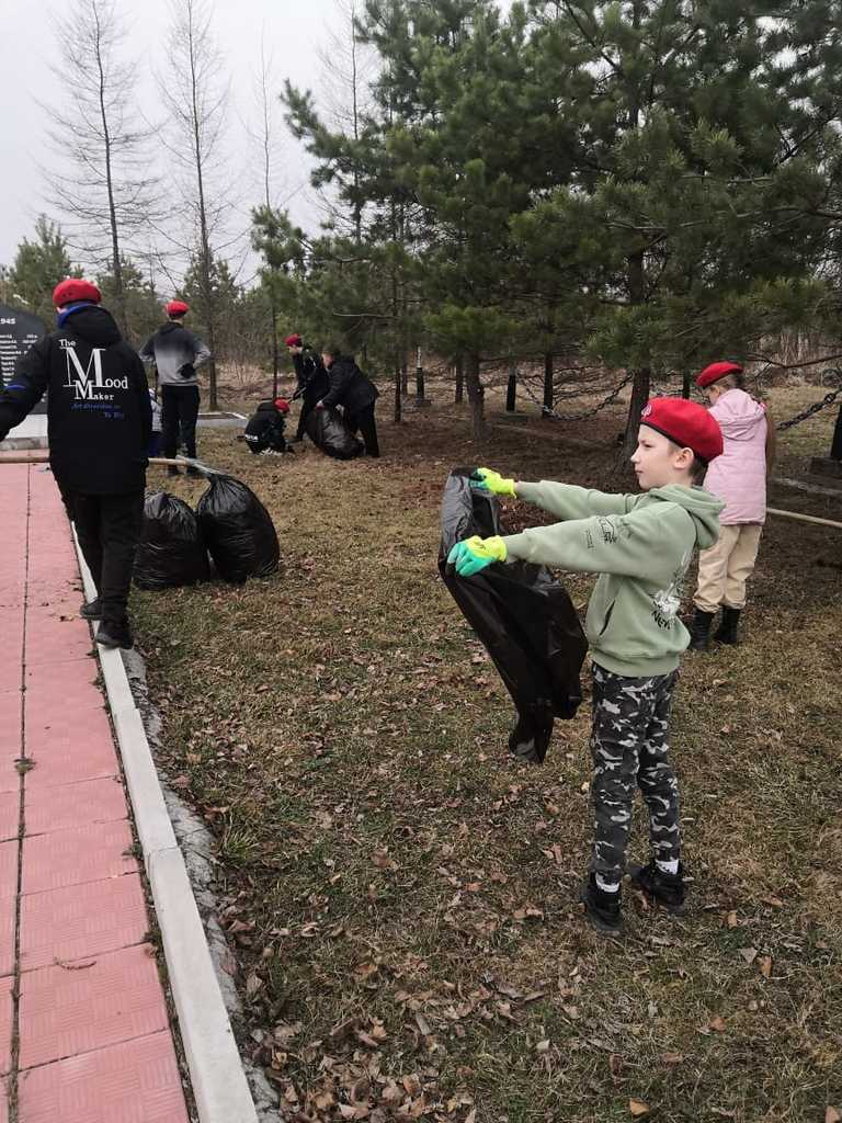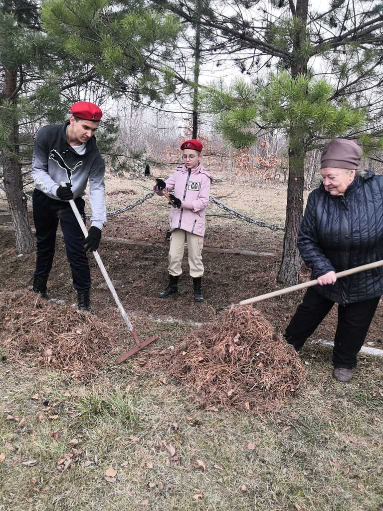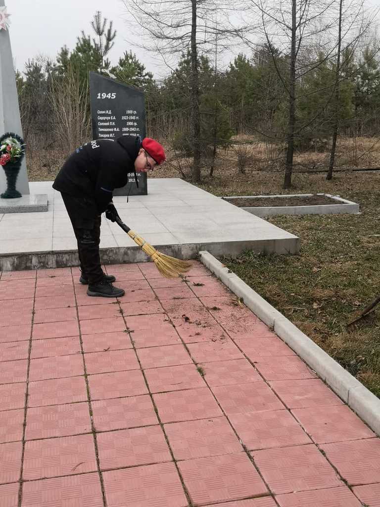 Вместе с работниками КДЦ в уборке территории Обелиска приняли участие юнармейцы «Сыны Отечества» МБОУ СОШ с. Таёжное со своим руководителем Башмаковой Мариной Игоревной.