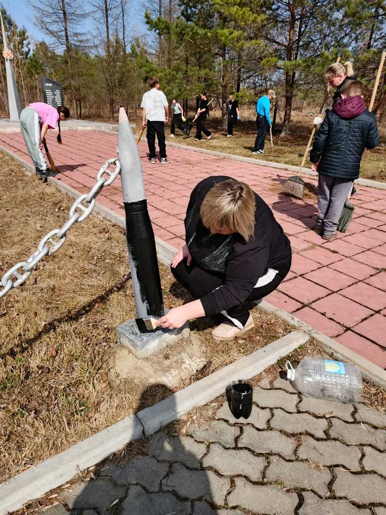 Активистами совместно с работниками КДЦ была проведена тщательная уборка территории, помыли пилоны, покрасили ограждение. Краску предоставила администрация Анастасьевского СП. В акции приняли участие и родители школьников, что подчёркивает важность семейного подхода к сохранению исторической памяти.