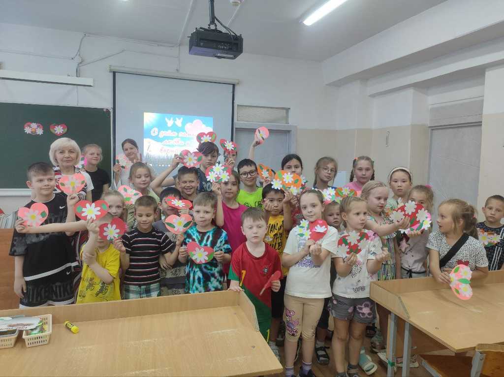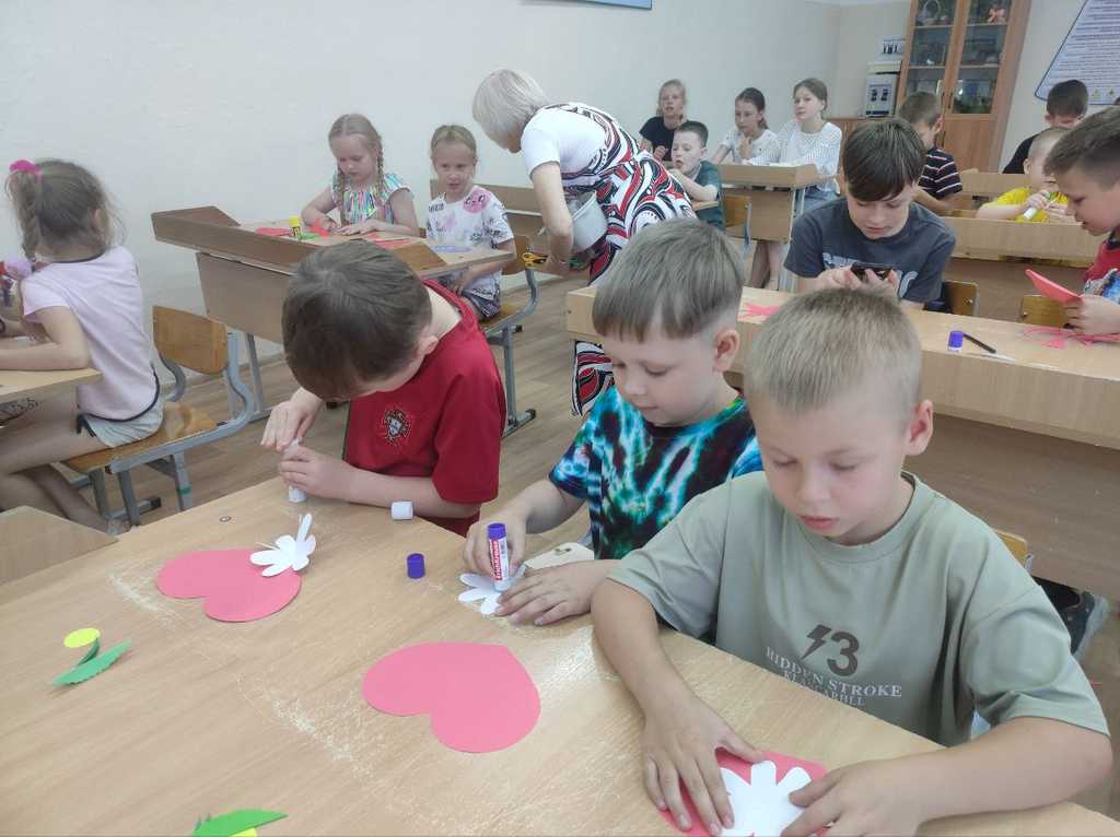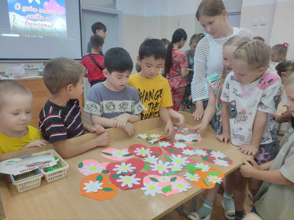 Вместе с ребятами школьного лагеря села Таёжное окунулись в атмосферу лета, творчества и праздника Дня семьи, любви и верности. Украсили бумажные сердечки ромашками – символом праздника. Пусть жизнь во всех семьях будет похожа на ромашку – светлая и с солнышком внутри!